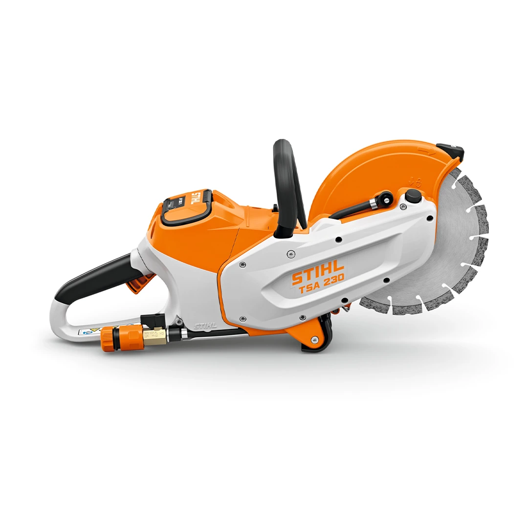 Projetado para ser leve e ergonômico, o TSA 230 pesa apenas 2,9 kg (sem a bateria), tornando o manuseio mais fácil e menos cansativo. Sua roda de corte de 230 mm permite um corte de até 70 mm de profundidade, ideal para cortar telhas, tijolos, pedras, blocos de concreto, metal e tubos. A máquina conta com um sistema de supressão de poeira com conexão de água, garantindo um ambiente de trabalho mais limpo e seguro.