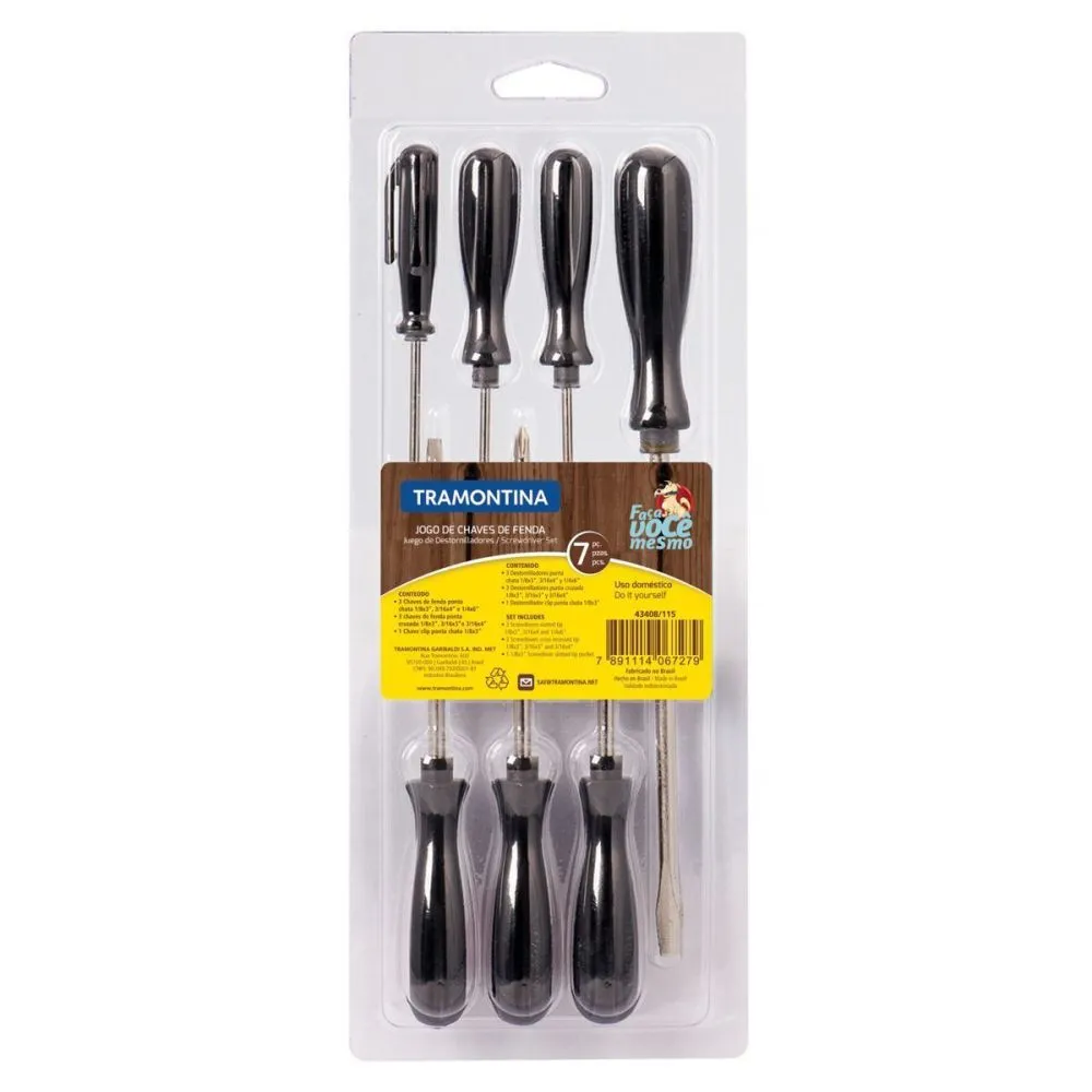 Jogo de Chaves de Fenda (3 Ponta Chata 3 Ponta Cruzada e 1 Tipo Clipe) Tramontina 7pçs